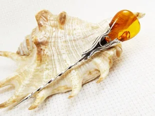 Szpilka srebrna z bursztynem naturalnym bałtyckim Jest wykonana ręcznie, z surowców najwyższej jakości. Szpilka jest bez zapięcia, może służyć do wpięcia we włosy, sweter, szal, krawat. . . Srebro próba 0,925. Waga całości: 6,5 gram. długość: 9,0 cm, wymiary bursztynu: