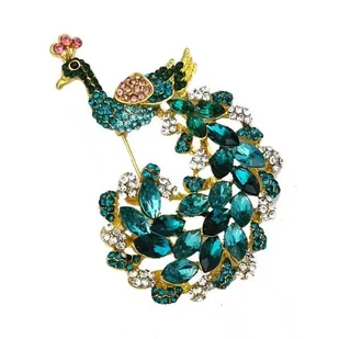 Turkusowy paw Broszka wypełniana cyrkoniami