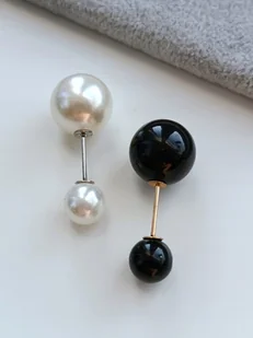 Zestaw 2Szt Klasyczna Krótka Szpilka Broszka Biała Perła Czarna Kulki