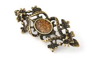 Polska Materiał: metal nieszlachetny + patynowany mosiądz Długość: 5,6 cm Szerokość: 2,3 cm Typ zapięcia: agrafka 4,5 cm Waga: