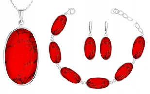 Przedmiotem oferty jest piękny, klasyczny komplet biżuterii srebrnej z koralami: - kolczyki wiszące z angielskim zapięciem, - bransoletka, - duża, owalna zaw...