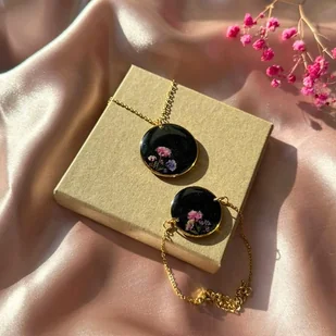 Przedstawiam bardzo wyjątkowy komplet biżuterii z kolorowymi kwiatami gipsówki na księżycowym tle. W skład kompletu wchodzi naszyjnik oraz bransoletka. Jest to unikatowy komplet wykonany ręcznie z najwię ...