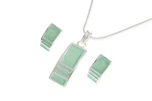 Nowoczesny komplet miętowy Komplet w kształcie prostokątów. Gładka posrebrzana powierzchnia. Miętowa masa jubilerska. Kolczyki typu wkręt. ✔ Produkt jest dos...