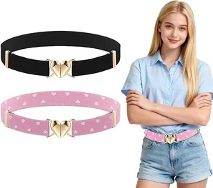 PASEK DZIEWCZĘCY ZESTAW 2 SZTUK W KSZTAŁCIE SERCA CZARNY RÓŻOWY REGULOWANY