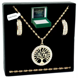 PIĘKNY ZŁOTY KOMPLET BIŻUTERII STAL CHIRURGICZNA 45 CM NASZYJNIK + KOLCZYKI