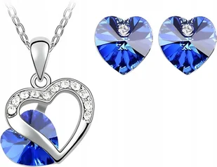 Srebrny komplet biżuterii ślubnej szafirowe serca posrebrzane serduszka