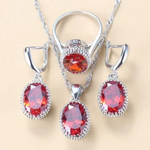 Srebrny komplet biżuterii z cyrkoniami - Czerwony 10