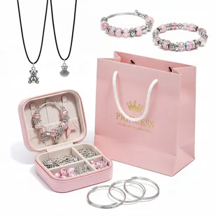 Wskazówki dla użytkownika: Wybierz bransoletkę lub naszyjnik. Nawlecz koraliki i zawieszki według własnego pomysłu. Zapiń i gotowe! Możesz nosić albo zmieniać elementy według nastroju. Po skończeniu przechowuj elementy w kuferku – wszystko w jednym miejscu, łatwo utrzymać porządek.