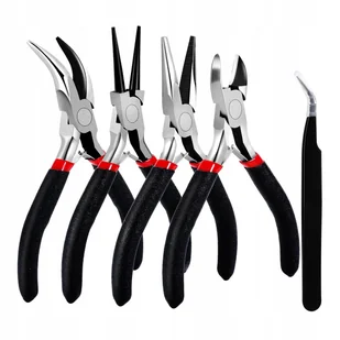 wysokiej jakości stal metalowa, odporna na odkształcenia Długości narzędzi: ok. 11–13 cm Uchwyty: ergonomiczne, antypoślizgowe, wygodne w użytkowaniu Zastosowanie: cięcie, gięcie, formowanie drutu, montaż i naprawa biżuterii, chwytanie i ustawianie drobnych elementów 1️⃣ Zestaw 5 narzędzi w jednym: W komplecie znajdziesz szczypce płaskie, okrągłe, zagięte, cęgi tnące oraz pęsetę z wygiętą końcówką – idealny pakiet dla każdego miłośnika rękodzieła i biżuterii.