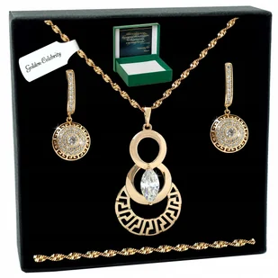 Złoty Komplet Biżuterii Dla Kobiety 60 Cm Gruby / Długi Z Cyrkoniami 18K