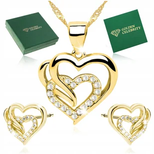 ZŁOTY KOMPLET BIŻUTERII ŁAŃCUSZEK NASZYJNIK ZAWIESZKA SERCE + KOLCZYKI 40cm