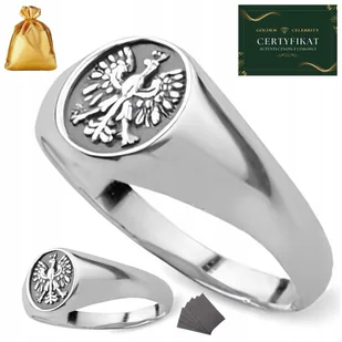 SREBRNY SYGNET MĘSKI OKSYDOWANY ORZEŁ GODŁO PATRIOTA SREBRO 925 ROZMIAR 21 - Golden Celebrity