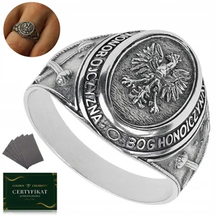 SYGNET MĘSKI SREBRNY Z ORŁEM SREBRO PRÓBA 925 BÓG HONOR OJCZYZNA ROZMIAR 26 - Golden Haus