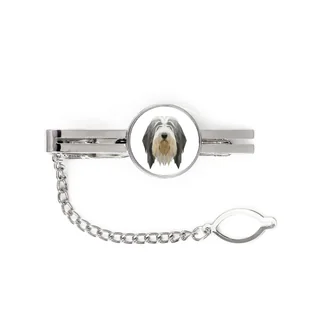 Bearded Collie, Highland Collie -geometryczna spinka ze zdjęciem i napisem do krawata Art-Dog