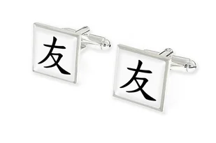 Spinki do Mankietów 3D symbole chińskie Wykonane z błyszczącego metalu w kolorze srebra. Białe tło, czarny symbol. Mocne zapięcie na obracaną przekładkę. ✔ Produkt jest dostępny ✔ Polska marka ✔ Fabryczne opakowanie Informacje Marka: Jubileo Kraj produkcji: