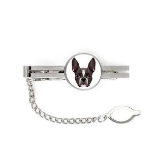 Boston Terrier, Boston Bull Terrier -geometryczna spinka ze zdjęciem i napisem do krawata Art-Dog