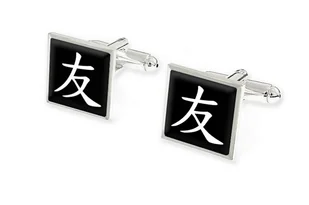 Spinki do Mankietów symbole chińskie Wykonane z błyszczącego metalu w kolorze srebra. Głęboko czarne tło i biały symbol. Mocne zapięcie na obracaną przekładkę. ✔ Produkt jest dostępny ✔ Polska marka ✔ Fabryczne opakowanie Informacje Marka: Jubileo Kraj produkcji: