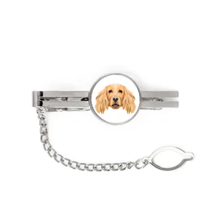 Cocker spaniel angielski -geometryczna spinka ze zdjęciem i napisem do krawata Art-Dog