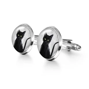 Czarny kot - spinki do mankietów