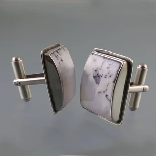 Ręcznie wykonane srebrne spinki do mankietów z agatem dendrytowym. Srebro próby 925 - próba wybita na spodzie. Wymiary spinek: 2,25 cm x 2,0 cm. Waga spinek: 15,5 g. ...