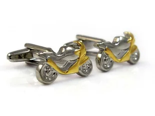 Grafitowo-złote spinki do mankietów - motocykle ścigacze A272 Zestaw zawiera: 2 sztuki spinek do mankietów Materiał: stal szlachetna Opakowanie: eleganckie p...