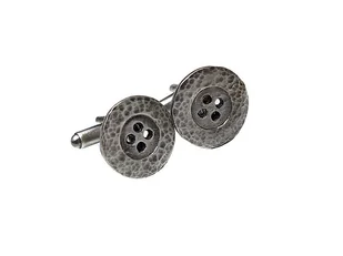 Spinki do mankietów wykonane od podstaw ze srebra [pr. 925] w połączeniu z imitacjami srebrnych guzików [śr.18mm, grubość 1,8mm] - młotkowane. Całość oksydowana i przetarta. Biżuteria ozdobnie zapakowana. ...