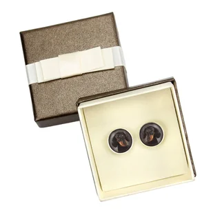 Jamnik krótkowłosy - spinki do mankietów w pudełku, biżuteria wykonana ręcznie, produkt marki Art-Dog