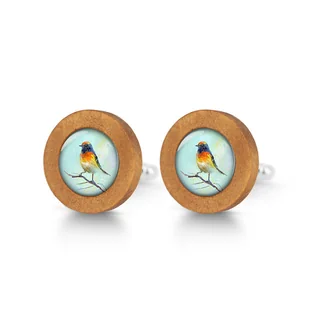 Kolekcja biżuterii - Pastel Dreams. Grafika ukryta w drewnianej oprawie, pod osłoną przeźroczystego półokrągłego szkiełka. Średnica miniaturki grafiki 12 mm. Średnica oprawy ok. 18 mm. Grubość oprawy ok. 4 mm. Ws ...