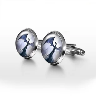 Proste, eleganckie spinki. Kolekcja biżuterii - Fantasy. Oryginalne spinki do mankietów z naszą autorską grafiką. Grafika pod osłoną przeźroczystego półokrągłego szkiełka. Oprawa w kolorze srebrnym ze stali nie ...