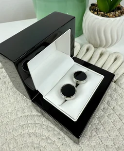 SPINKI DO MANKIETÓW czarne oczka smokingowe srebrne