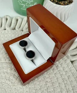 SPINKI DO MANKIETÓW czarne oczka smokingowe srebrne