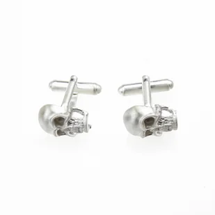Spinki do mankietów wykonane ze srebra z czaszkami. Tutaj w satynowej wersji kolorystycznej. Szerokość czaszki: 1,1 cm, długość: 1,5 cm. Waga: 10,1 gr. Nr ka...