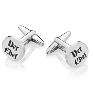 Spinki do mankietów dla szefa X2 Der Chef Pokaż wszystkim kto trzyma władzę w firmie! Z naszymi okrągłymi spinkami do mankietów w kolorze białym z napisem “D...