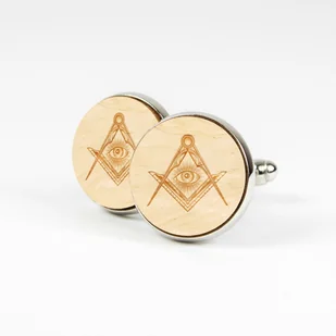 Spinki do mankietów drewniane - Masoński cyrkiel i węgielnica