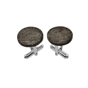 Spinki do mankietów Fossil Koralowiec (S1148) Srebro [925] - S1148 Srebrne spinki do mankietów z Koralowcem Fossil Czarnym Wyjątkowe spinki do mankietów wyko...