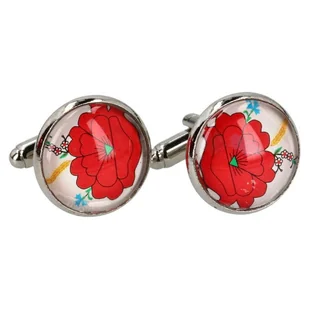 Spinki do mankietów – biały haft kociewski z kwiatowym wzorem Folkowy detal o wyjątkowej symbolice Spinki do mankietów z motywem haftu kociewskiego to elegan...
