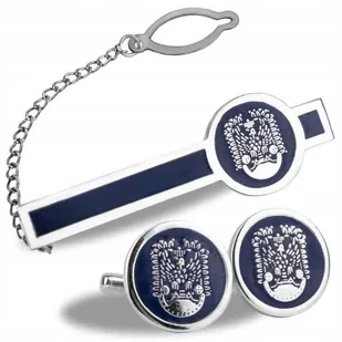 Spinki do mankietów – Wykonane z wysokiej jakości stali nierdzewnej w kolorze niklowanym, ozdobione eleganckim wizerunkiem orła Sił Powietrznych RP umieszczonym w subtelnym okręgu. Spinka do krawata – Wyposażona w praktyczny łańcuszek z zapięciem, pozwalający na stabilne przymocowanie do guzika koszuli. ✅Stylowy design idealnie współgra z pozostałymi elementami zestawu, podkreślając przynależność do Sił Powietrznych.
