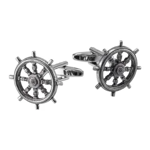 Spinki do mankietów Koło Sterowe X2 WCL140 Symbole marynarskie wyglądają niezwykle elegancko i kojarzą się z morskimi widokami, dlatego są to oznaczenia tak lubiane. Wszystkim miłośnikom rejsów, marynarzom i wielbicielom spędzania czasu nad wodą polecamy te spinki do mankietów w kształcie kół sterowych. Spinki w stylowy sposób podkreślą pasję do morskich klimatów. Marynarskie gadżety Koła sterowe na mankietach będą oryginalnym dodatkiem podkreślającym elegancję. Wykonane zostały ze stopu cyny i ołowiu w niezwykłym kolorze starego srebra.