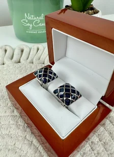 SPINKI DO MANKIETÓW kwadratowe niebieskie srebrne
