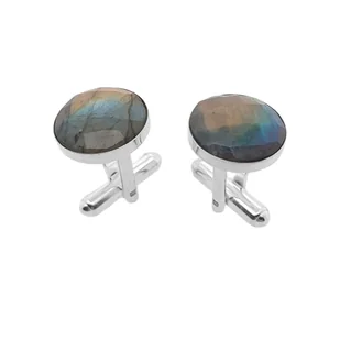Spinki do mankietów Labradoryt okrągły Ø14 w oprawie (S1189) Srebro [925]