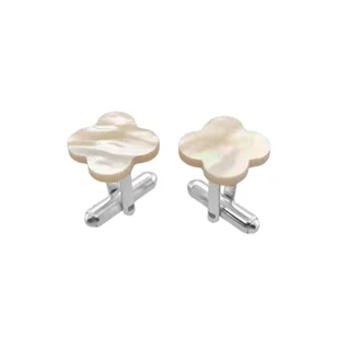 Spinki do mankietów Muszla koniczyna (S1180) Srebro [925] - S1180 Srebrne spinki do mankietów koniczyna wykonana z muszli. Oryginalne srebrne spinki do manki...