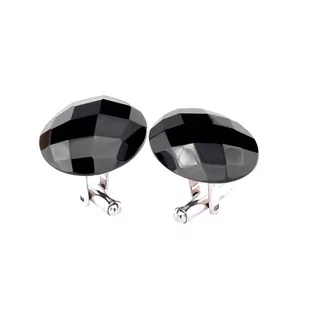 Spinki do mankietów Onyks fasetowany duży owal (S107) Srebro [925]