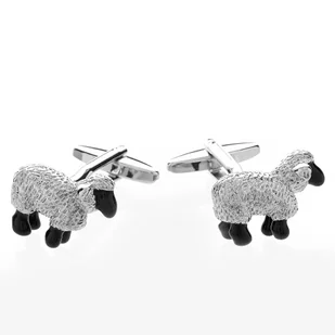 Spinki do mankietów Owieczki SD-1407 Spinki do mankietów w kształcie przesłodkich owieczek ze srebrzystym futerkiem, czarnym pyszczkiem oraz czarnymi “skarpe...