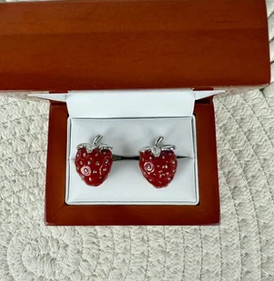 SPINKI DO MANKIETÓW prezent poziomki truskawki owoc