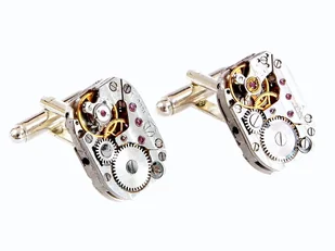 spinki do mankietów wykonane ręcznie pełne mechanizmy starych zegarków baza spinek posrebrzana, w kolorze platynowym rozmiar: 18 mm : 16 mm zapakowane w eleganckie pudełko