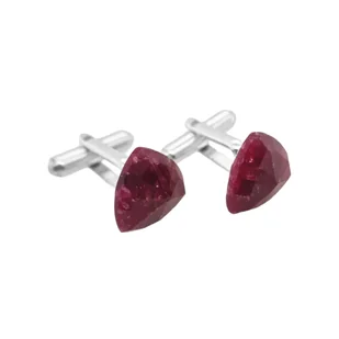 Srebrne spinki do mankietów z rubinem Wykorzystane materiały to srebro próby 925 i unikalny dobarwiany rubin. Wymiary spinki to 13x13 (mm), a wysokość to 5 (...