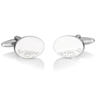 Spinki do mankietów SD-9009 Owalne spinki do mankietów wykonane ze stali szlachetnej w srebrnym kolorze, wykończone na połysk i ozdobione delikatnym, kwiatowym wzorem, to kwintesencja elegancji i uroku. Bardzo ozdobne a równocześnie minimalistyczne, przypadną do gustu Panom ceniących klasyczną biżuterię bez nadmiernego przepychu. Sprawdzą się jako dodatek do stroju podczas każdej uroczystej okazji – niezależnie czy jest to wieczorny koncert, firmowa gala lub świąteczne spotkanie z rodziną. Mogą również z powodzeniem ozdobić mankiety damskich koszul. Wymiary spinek do mankietów to 18 x 12 mm.