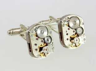 A co powiecie na naszą najnowszą, na razie jeszcze próbną, linię spinek - tym razem bez zatapiania ich w żywicy, ale za to z pełnymi mechanizmami starych zegarków. Wprawdzie nie usłyszycie ich tykania, ...