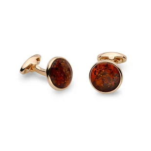 Spinki do mankietów srebrne 925 pozłacane z bursztynem - okrągłe