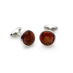 Spinki do mankietów srebrne 925 z bursztynem - okrągłe